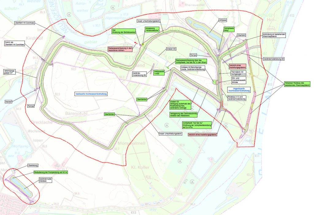 Die Veranstaltung hat auch gezeigt, dass die Planung des PFB 2023 nicht alle gerichtlich bestätigten Anforderungen erfüllt und das einzelne Gutachten (Grundwassermodell, Naturschutz) aufgrund ihres Alters nicht mehr dem Stand der Technik entsprechen. Die Planer gehen bei der K7 (Straße nach Rheingönheim, besonders im Bereich der Rehbachkurve und -brücke) von einer Standfestigkeit (bis zum Bemessungshochwasser) auch bei zweispuriger Nutzung aus.