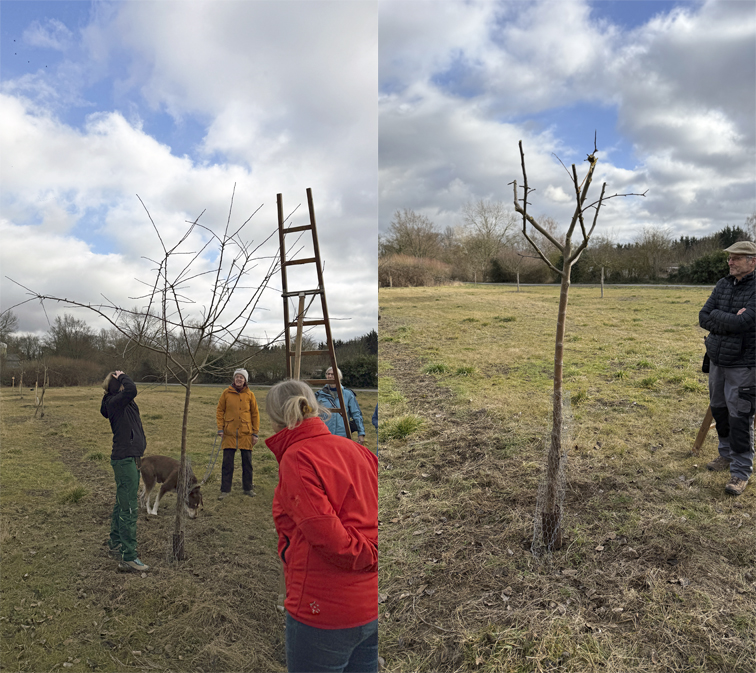 Eine kleine Kostprobe der Schulung gibt das Video Vorbereitung Baumansprache wieder. Es wurden hauptsächlich die im Herbst bei der Schüleraktion gepflanzten Bäume beschnitten. Ein Eindruck wie viel bei den Bäumen weggeschnitten wurde, gibt nachfolgendes Vorher – Nachher Bild: