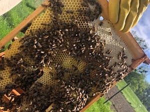 Bei ersten Beobachtungen aus respektvoller Distanz zur Bienenbeute, freute man sich über das emsige Treiben am Flugloch und über jede Biene die mit gelb- oder organge farbigem „Pollenhöschen“ angeflogen kam. Leider mussten wir auch die asiatische Wespe sehen, die in den Bienenstock eindringen wollte, aber glücklicherweise von den Wächterbienen erfolgreich abgewehrt wurde.