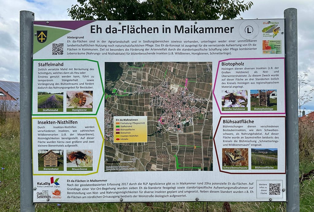 Nachfolgende Bilder zeigen Informationstafeln, die die eh-da Flächen und Maßnahmen in den jeweiligen Orten darstellen. So etwas würden wir uns auch für Altrip wünschen.